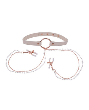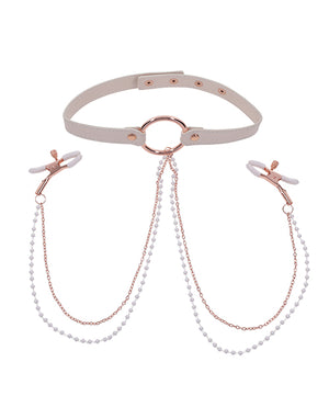 Sex & Mischief Peaches 'n CreaMe Collar w/Nipple Clamps