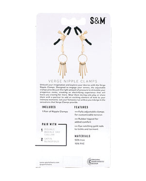 Unleash your imagination and explore your desires with the Verge Nipple Clamps. Designed to engage your senses, the adjustable clamps provide just the right amount of pressure to stimulate your erogenous zones, creating an electrifying experience that will leave you craving for more. Wear them during solo play or share them with a partner to add an exciting element of kink to your intimate moments. Let your fantasies run wild as you indulge in the sensations that Verge Clamps provide