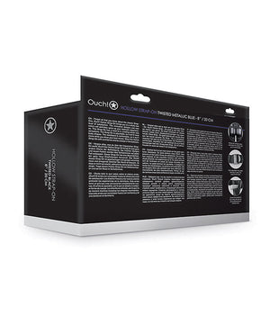 Shots Ouch 8" Ribbed Hollow Strap On w/Balls - Metallic Blue