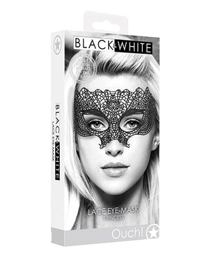 Shots Ouch Black & White Lace Eye Mask - Princess Black