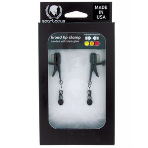 Slim, sleek, and lovely! Black Beaded Nipple Clamps adorn the body while creating pleasurable sensations without the weight of heavier clamps. They are adjustable to allow you the choice of light pressure of full-strength intensity and feature rubber tips for a comfortable and confident grip.