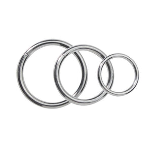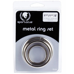 Metal cock ring set from Spartacus. 1.25" (31.75mm), 1.75" (44.45mm), 2" (50.8mm).