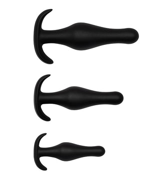 Practice really does make perfect with the Perfect Practice anal training kit. Start with Lesson One, a tapered 4" plug with convenient handles for easy insertion and removal. Designed with soft and flexible silicone, these plugs are sure to heat things up during sexy solo sessions or partnered play. Once you’ve mastered the first plug, graduate to Lesson Two, a 4.75" plug, and then Lesson Three, a 5.75" plug for even more penetration pleasure. Before you know it, you’ll graduate from fantasy to fetish.