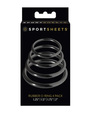 Find the perfect fit! Expand the versatility of your favorite SportSheets strap-on harness with four sizes of rubber O-rings. These moderately stretchy, latex-free rings allow you to affix new and exciting dildos from extra-small to extra-large to your favorite harness. Alternately, you can choose your ideal size and tightness to wrap around you penis or your balls and penis, and use them as a cock ring. With restricted blood-flow, your erection will be harder, more sensitive, and longer-lasting than ever before.