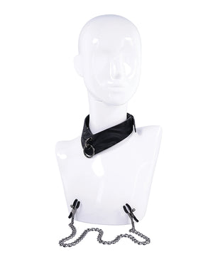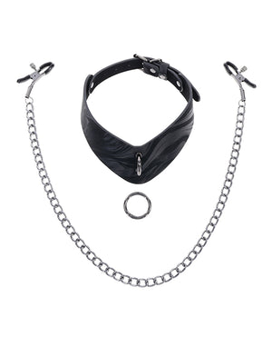 Sportsheets Velvet Noir Collar & Removable Clamps - Black