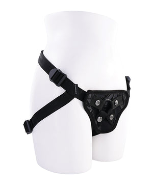Own your desires and step boldly into new experiences with the Velvet Noir Strap On. Wrapped in luxurious marbled faux leather and accented with hematite details, this harness blends style with comfort. Its 4-way adjustable design offers a tailored fit, ensuring you stay in control while moving effortlessly through your fantasies. The built-in rubber O Ring snaps open, allowing you to swap it out with ease for your favorite flare-base toys. Whether you're exploring new dynamics or deepening connection, the Velvet Noir Strap On makes every moment feel intentional, confident, and unforgettable.