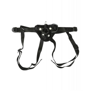 Sporting as big of a dildo as you can handle (not included), this elegant and velvety strap-on harness is durably constructed and includes 3 interchangeable O-rings to secure your dong. An included bullet vibrator nestles in a well-positioned pocket to provide her with clitoral stimulation while she thrusts into you. Four-way adjustable straps ensure that this harness is compatible with a wide range of body types.