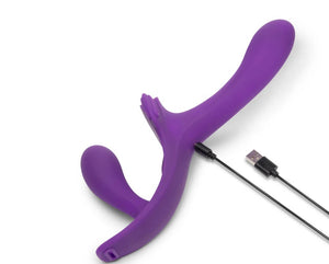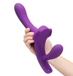Experience ultimate shared pleasure with this dual-ended vibrating strap-on, designed specifically for couples. Its ergonomic design ensures it stays securely in place during play, allowing both partners to focus on the moment as it flexes to hit all the right spots. The contoured base is thoughtfully crafted to provide external clitoral stimulation for the wearer, enhancing sensations and making every experience more satisfying. Made from ultra-smooth, body-safe silicone, this strap-on feels luxurious against the skin and is easy to clean for worry-free use. Take your adventures anywhere, as this strap-on is fully waterproof and submersible, making it perfect for steamy sessions in the tub or shower. Charging is effortless with its hassle-free magnetic connection, ensuring the device is always ready when you are. The strap-on also features a traditional adjustable harness for a secure fit no matter how rough you play. Smooth and flexible 5.5" & 4" vibrating silicone dildos .Luxuriously soft and elastic harness, ensures maximum comfort during wear. Includes 10 adjustable vibration modes on each end with clitoral stimulation. Encourages & enables eye contact — Great for face-to-face intercourse. Made of ultra-smooth easy to clean body safe silicone. Insertable Length: 135mm / 85mmItem Materials: Vibrator: Silicone Harness: Polyester & Iron