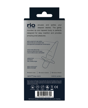 VeDO Rio ANAL VIBE arouses and ignites your deepest desires. The gently rounded tip and tapered body is perfectly designed for easy insertion and provides amazing anal pleasures. Powerful motor. 10 vibration modes. One button easy control(TM). Extremely quiet. Designed for an easy insertion. Waterproof - submersible. 1xAAA (not included). Running time 2 hours. Length: 13.5cm. Max diameter: 3cm. • 100% Silicone