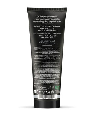 Get down to the basics with stripped and bare Sensual Massage Cream. This fragrance free formula softens and nourishes every inch of skin with each stroke. Blended with indulgent oils. Vitamins A and E quench thirsty skin. Electrolytes for skin hydration. Perfect for solo or partner use.