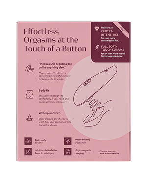 Simple and efficient, Womanizer CLASSIC 2 uses our ground-breaking, original Pleasure Air technology to offer effortless orgasms in record time. 10 Intensity levels - Whether you prefer soft and gentle or powerful and intense, or something in between – your next orgasm is just the push of a button away. The intensity levels are perfectly balanced and offer the right setting for your every mood. Afterglow - By short-pressing the power button, your toy quickly reverts to its lowest setting for a relaxing end to an orgasm. Extra Stimulator Head - We know that every body is different and beautiful! For this reason, every box includes two sizes of stimulator heads to ensure that everyone can enjoy their WOMANIZER.