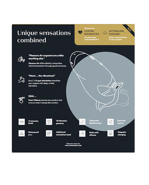 Pleasure Air surrounds the clitoris with pulsating waves and gentle suction leading to a new kind of extraordinary orgasm.