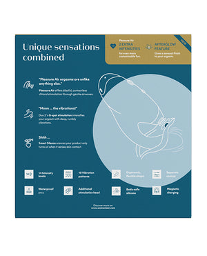Pleasure Air surrounds the clitoris with pulsating waves and gentle suction leading to a new kind of extraordinary orgasm.
