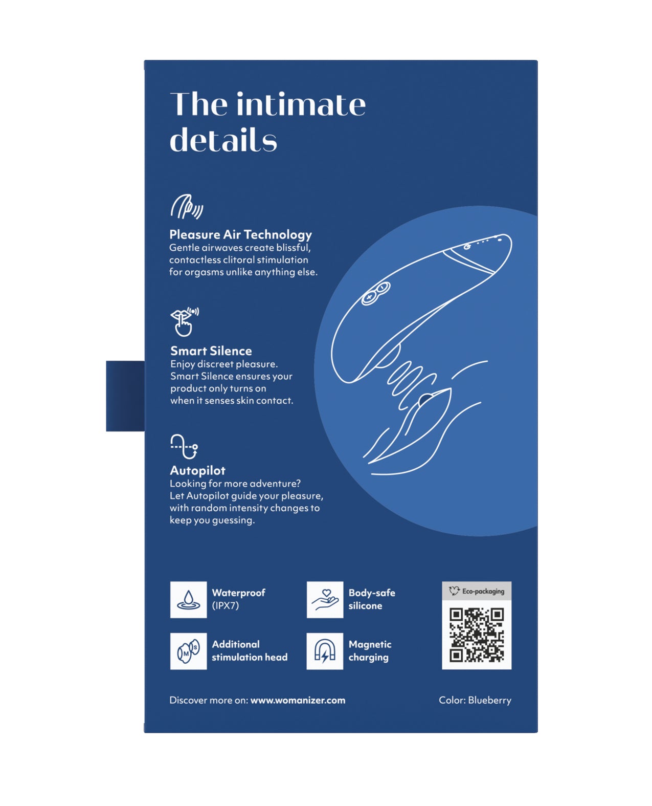 Womanizer PREMIUM 2 with the original Pleasure Air technology is our most luxurious creation yet – truly the Prada of sex toys, the ultimate toy for women who are looking for more than just another device to play with. With more intensity levels than ever before and an improved Autopilot function to take you on new, unpredictable adventures, PREMIUM 2 is the purest pleasure at the highest quality. 14 Intensity levels - Whether you prefer soft and gentle or powerful and intense, or something in between – your next orgasm is just the push of a button away. The intensity levels are perfectly balanced and offer the right setting for your every mood. Extra Stimulator Head - We know that every body is different and beautiful! For this reason, every box includes two sizes of stimulator heads to ensure that everyone can enjoy their WOMANIZER. Autopilot 2.0 - When active, your toy will alternate between intensity levels and keep you on your toes. Sometimes intense, sometimes gentle – always extraordinary. Our Autopilot mode was developed in response to feedback from our testers – an improved feature that users love. Smart Silence - Innovative Smart Silence Technology lets you indulge in your desire. The toy only starts when it meets your skin. If you're not using it, the toy goes into standby mode. This not only makes the toy quieter to use but keeps you in the moment without distraction. Materials: Body-safe silicone, made without phthalates, BPA or latex Dimensions: 155 mm x 50 mm x 35 mm USB rechargeable Run Time - 240 min Charge Time - 120 mins IPX7 Waterproof. Five Year Warranty