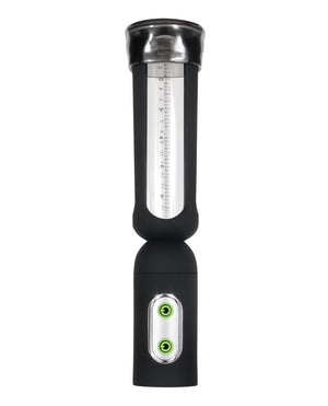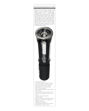 Watch your penis grow bigger and stronger with a suction pump that tracks your progress with precise measurements in a see-through chamber! The super-soft TPE rubber entry feels great and creates a perfect seal as you start off slow with the first suction speed, then amp up the pace to wherever you feel comfortable. A quick-release button makes sure you're always safe and secure. Pump your way to longer, harder erections, better ejaculation control - and more. The entry sleeve removes for easy cleaning and the powerful motor is rechargeable via USB.