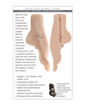 Slip into size sexy with this very realistically crafted foot that features supple life-like toes, a smooth rounded heel and a gently curved arch - with a unique surprise in store for the ultimate pleasure. Stop pussy footin’ around and get the only toy that will satisfy a major foot fetish!