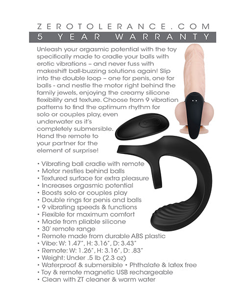 Zero Tolerance Vibrating Ball Cradle w/Remote - Black