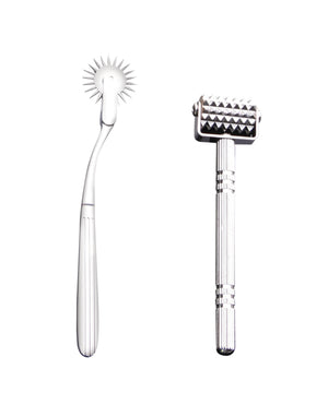 Amaze your partner with visual and sensational delights! Dive into thrilling sensations with this complete violet wand kit designed for electrifying fun. Packed securely in a sturdy metal aluminum and wood case, it includes everything you need to create an unforgettable and electrifying scene. Experience the mesmerizing purple glow emitted from each of these classic violet wand shapes! Explore the unique sensations of each electrode and try out the comb, mushroom, pinpoint, spoon, balltip, and plasma globe. Enjoy the steady, strong electric current of these solid-state wands for smooth, uninterrupted play. Adjust the intensity to cater to each person you play with. Go beyond the glowing glass and elevate your experience with conductive metallic tools like the Wartenberg wheel, Rollenstein, and ball chain flogger. Get intimate and use the body contact plate, allowing your entire body to transmit tingling electricity with every touch. Just plug in and play—no power box needed!